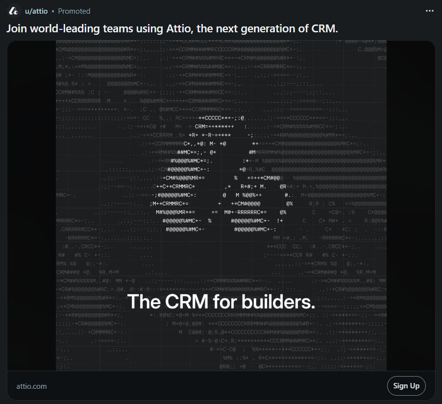 I like this Attio ad as it really does dip into the âReddit aestheticâ of more tech-literate people. I also love a stylistic logo switch up!