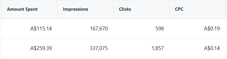 When was the last time you saw costs this low?! High impressions, high clicks, low costs. Our thinking at first was almost âwho cares if it performs poorly, weâll get results through sheer volume and itâll still be cheaper than Meta/Google!â