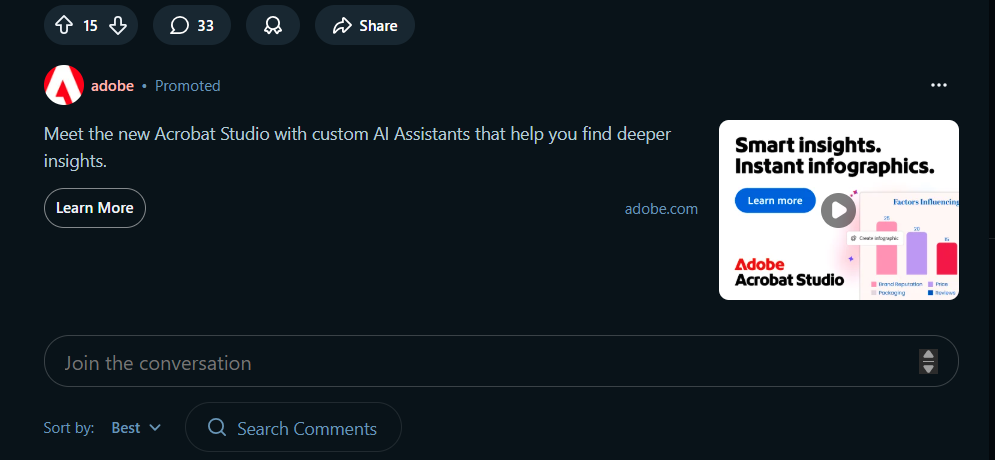 Redditâs advertising interface and reporting are very clunky and not intuitive at all. It was even worse than Meta. In addition, their accounts team was very unresponsive. My account manager replied several months after I first contacted them, and the $500 promotion I was supposed to receive never eventuated.