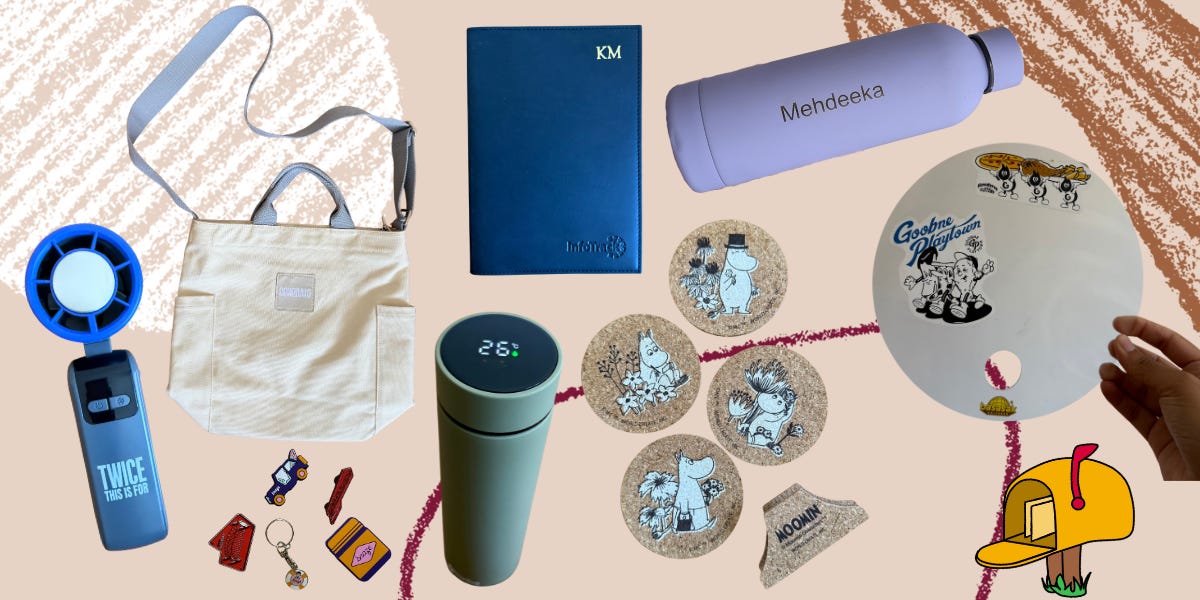 “We have to have something so we made water bottles, notebooks, pens, and tote bags” merch